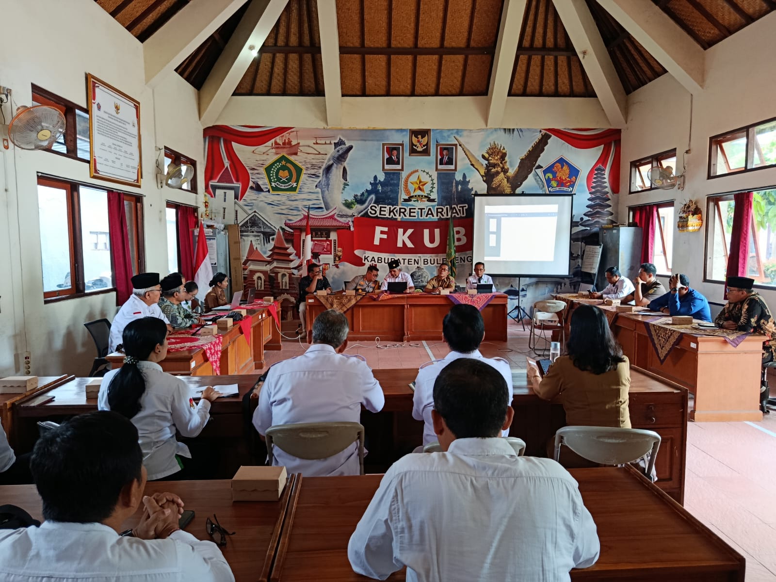 Buleleng – Senin, 2 Maret 2026, Badan Kesatuan Bangsa dan Politik Kabupaten Buleleng menghadiri kegiatan rapat pembahasan penyusunan seruan bersama pelaksanaan Hari Raya Nyepi Tahun Baru Çaka 1948 yang bertepatan dengan malam takbiran Idul Fitri 1447 Hijriah Tahun 2026. Kegiatan ini dilaksanakan di Sekretariat FKUB, Jalan Dewi Sartika Selatan No.25, Kelurahan Kaliuntu, Kecamatan Buleleng, dan diikuti oleh sekitar 40 peserta dari unsur pemerintah daerah, aparat keamanan, tokoh agama, serta organisasi kemasyarakatan.