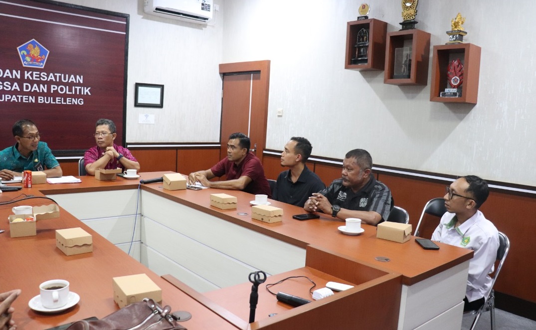 Rapat koordinasi ini dipimpin langsung oleh Kepala Badan Kesatuan Bangsa dan Politik Kabupaten Buleleng, Drs. Nyoman Widiarta, dan diikuti oleh sekitar 10 orang peserta dari unsur instansi terkait yang tergabung dalam Tim Terpadu Pengawasan Ormas Kabupaten Buleleng.